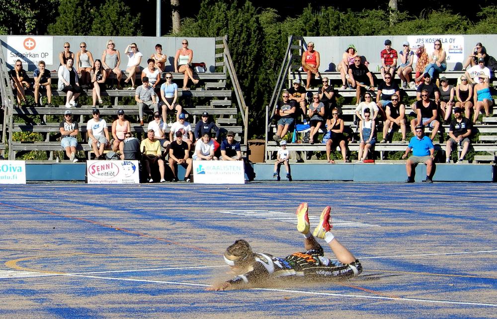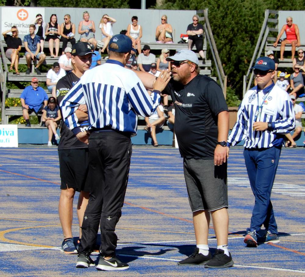 Etelälohkon ensimmäinen finaaliottelu pelattiin upeassa säässä. Ottelun lyöntipelin aloitti vierailijajoukkue Kinnarin Pesis, mutta Tarmon vakuuttava ulkopeli ei päästänyt vastustajaa kertaakaan etenemään edes kolmospesälle asti.